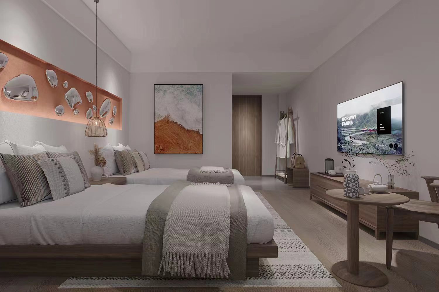 七彩丹霞景区集中民宿酒店群;是位于甘肃省张掖市境内,景区总面积50平方米,首期规划36栋720间风景民宿酒店、由成都海文酒店工程管理公司兰州分公司承建、为提高当地旅游竞争水平、打造特色旅游民宿酒店;
